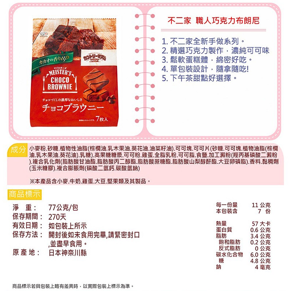 不二家職人巧克力布朗尼,每一口都是濃郁巧克力的極致享受。這款77克的獨立包裝,方便您隨時隨地享受美味。作為一款蛋糕點心,它不僅滿足您對甜食的渴望,更帶來一份職人精神的精緻體驗。每一塊布朗尼都經過精心烘焙,確保口感濕潤、味道濃郁,讓您在忙碌的生活中也能輕鬆享受片刻的甜蜜。無論是搭配咖啡或茶,都是完美的下午茶點心,讓您感受來自日本不二家的經典美味。