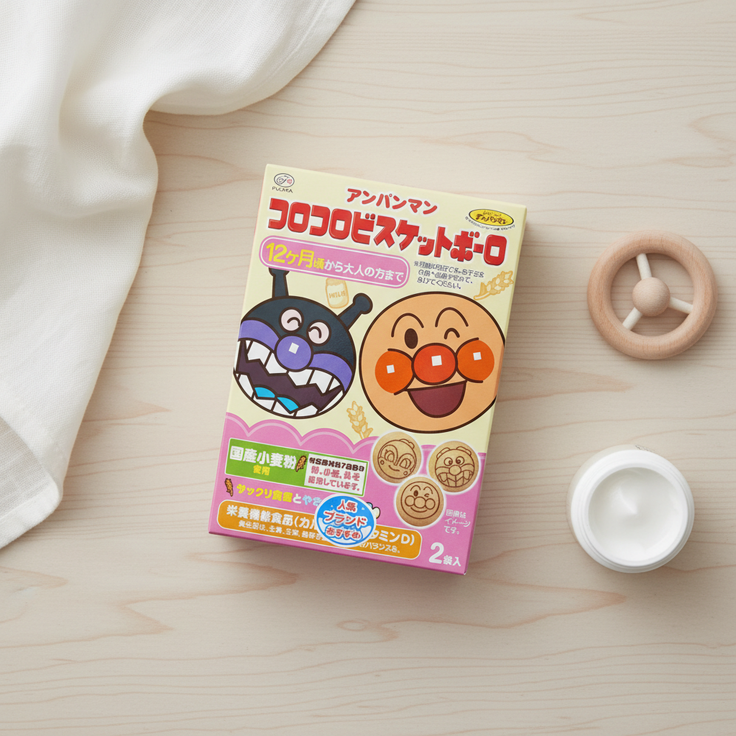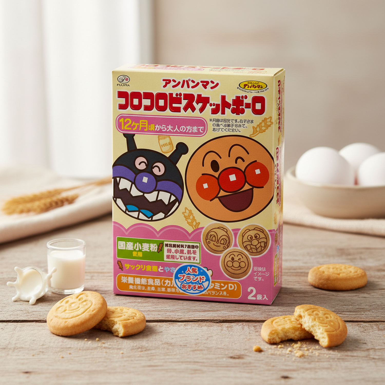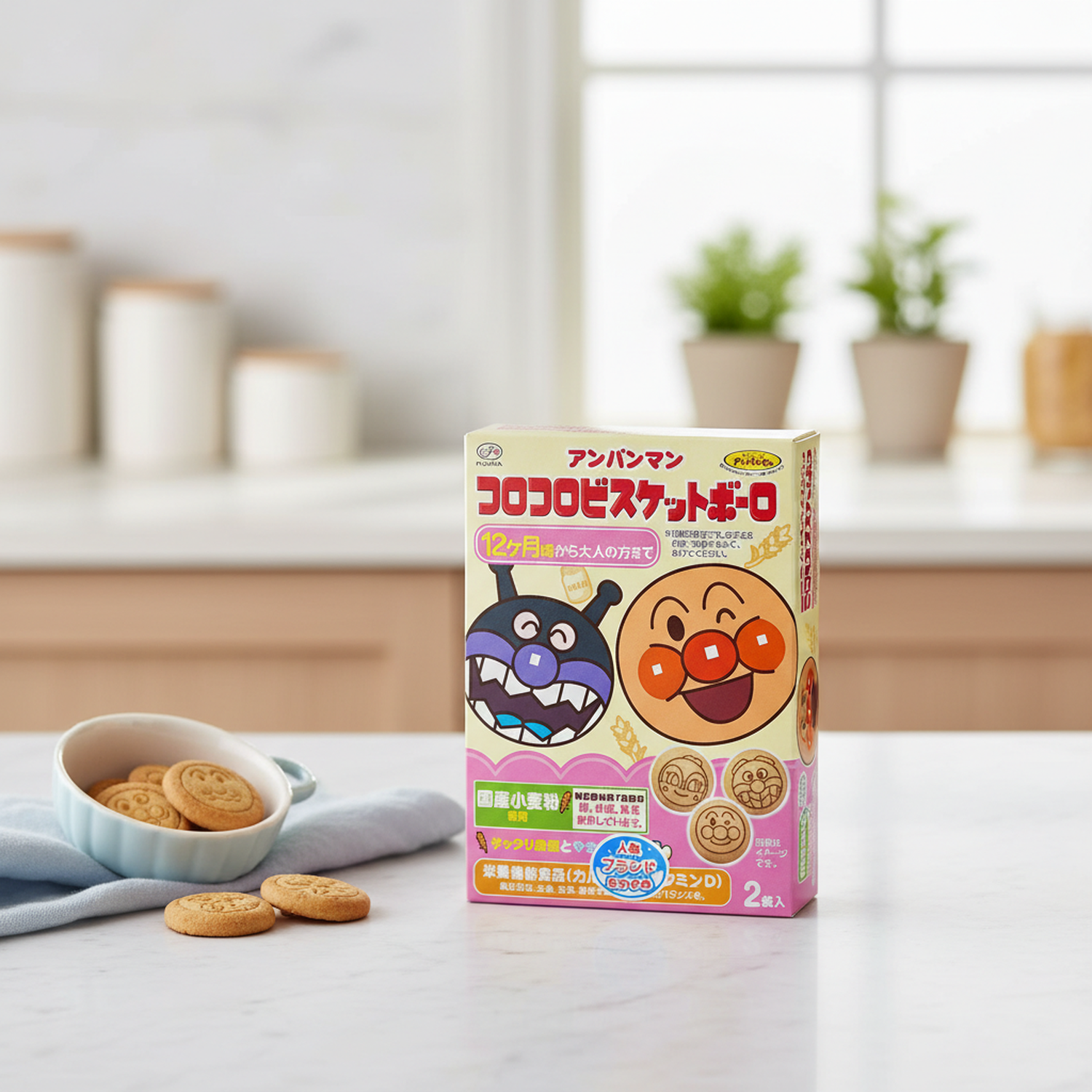 - 不二家麵包超人餅乾,可愛造型,吸引寶寶目光,促進手眼協調,好吃又好玩。