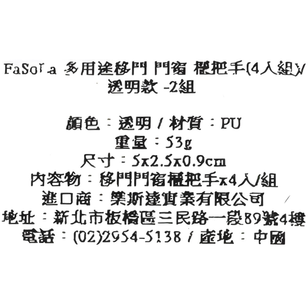 FaSoLa 多用途移門 門窗 櫃把手 PU材質 5x2.5x0.9cm (Set 4個), 透明, 2組