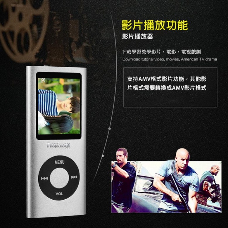 Fantasy 插卡款1.8吋彩色螢幕MP4隨身聽(加32G記憶卡) 附六大好禮, 銀色, B1830A