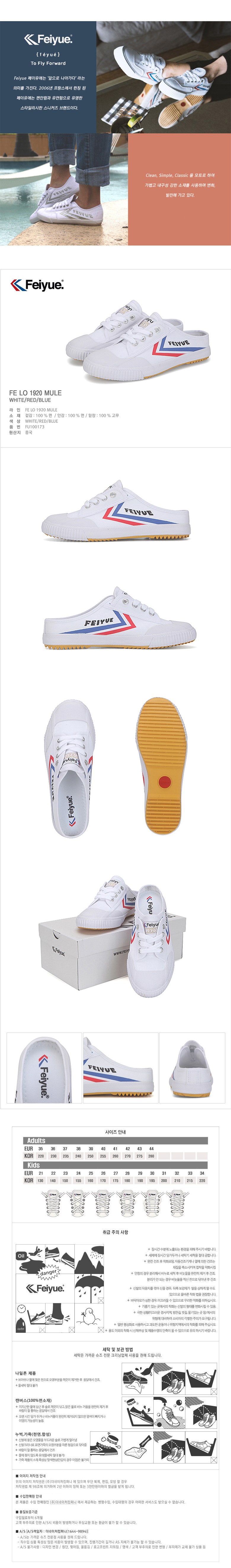 Feiyue 페이유에,寓意著「勇往直前」。品牌創立於 2006 年的法國,以舒適柔軟的特性著稱,設計簡約經典,風格時尚百搭,廣受大眾喜愛。 FE LO 1920 MULE 系列,採用耐用的帆布材質,透氣舒適,輕便好穿。經典的紅白藍配色,簡約大方,展現獨特的時尚風格。橡膠大底,防滑耐磨,經久耐穿,讓您輕鬆應對各種場合。
