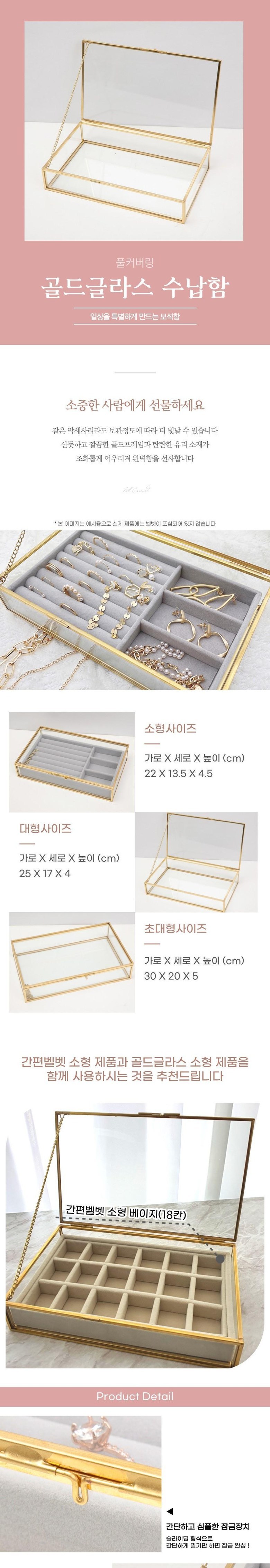 Full-Covered 簡易絲絨專用玻璃收納盒 小款, 金色, 1個