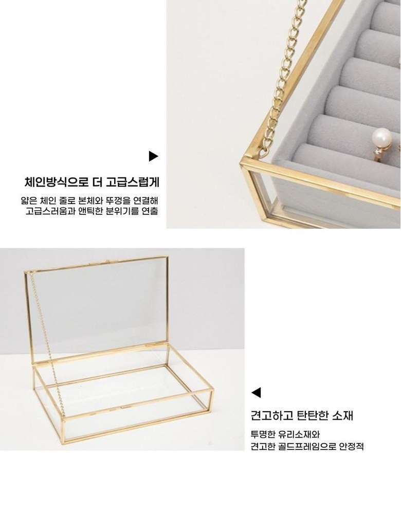 這款Full-Covered金色邊框簡易絲絨專用玻璃收納盒,是您收納珍貴飾品的理想選擇。清爽簡潔的金色框架與堅固的玻璃材質完美融合,呈現出高雅質感。搭配簡便絲絨內襯,能溫柔呵護您的飾品,避免刮傷。滑動式鎖扣設計,使用方便,讓您輕鬆收納。多種尺寸可選,滿足您不同的收納需求,讓您的日常更加精緻。