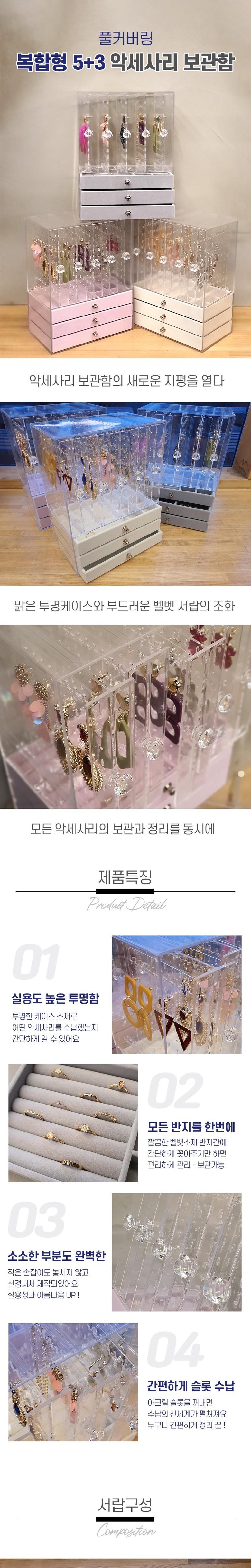 這款全覆蓋複合型5+3層飾品收納盒,採用高檔透明材質,讓您輕鬆瀏覽盒內物品,告別翻找的煩惱。多層抽屜設計,提供充足的收納空間,可分類存放戒指、耳環、項鍊等各式飾品。天鵝絨內襯,溫柔呵護您的珍貴飾品,避免刮傷。精緻小把手設計,兼具實用性與美觀性。無論是自用或送禮,都是展現品味的絕佳選擇。