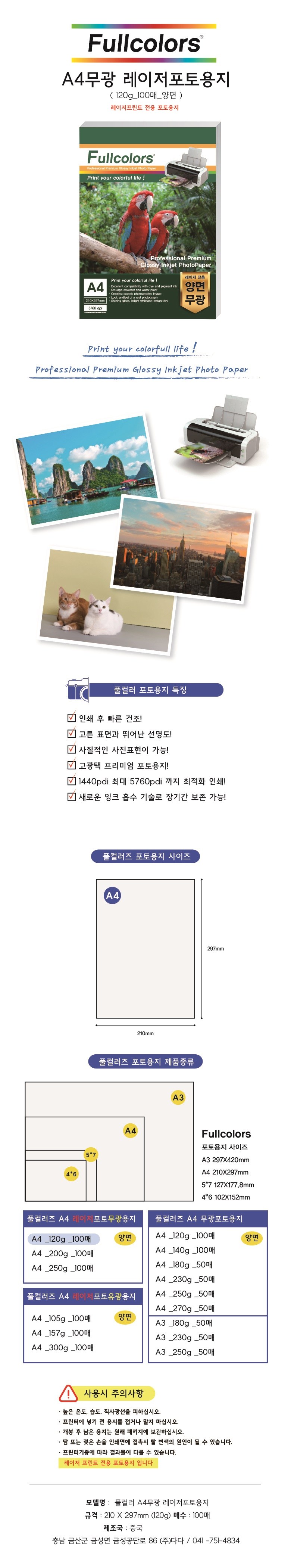 Fullcolors 全彩霧面雷射相紙,專為雷射印表機設計,提供卓越的列印品質。A4尺寸和120克的厚度,確保列印的文件具有專業質感。霧面處理能有效減少反光,使圖像和文字更清晰易讀。每包100張的設計,滿足大量列印需求,適用於辦公室、學校和家庭使用。無論是列印照片、報告或宣傳資料,都能呈現出色的效果。