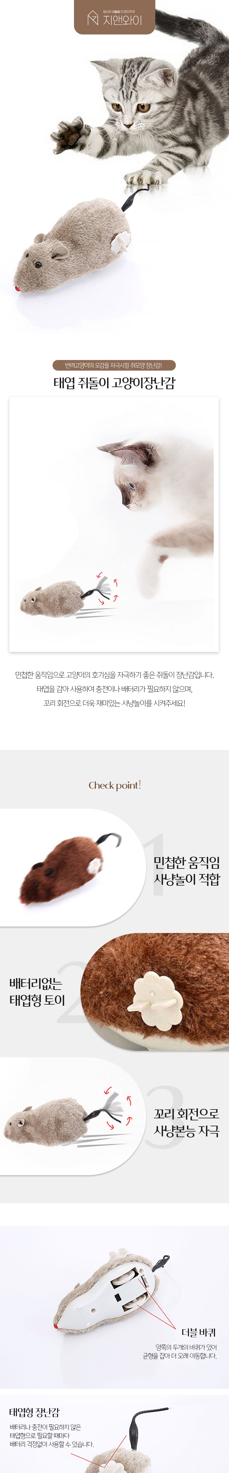 - 發條驅動設計,不需電池或充電,隨時都能讓貓咪玩耍,方便又環保。