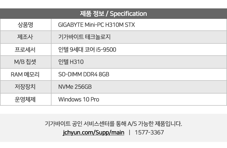 GIGABYTE 技嘉 迷你電腦 H310M STX (i5-9500), GA-H310MSTX-HD3, WIN10 專業版,內存 8GB,固態硬盤 256GB