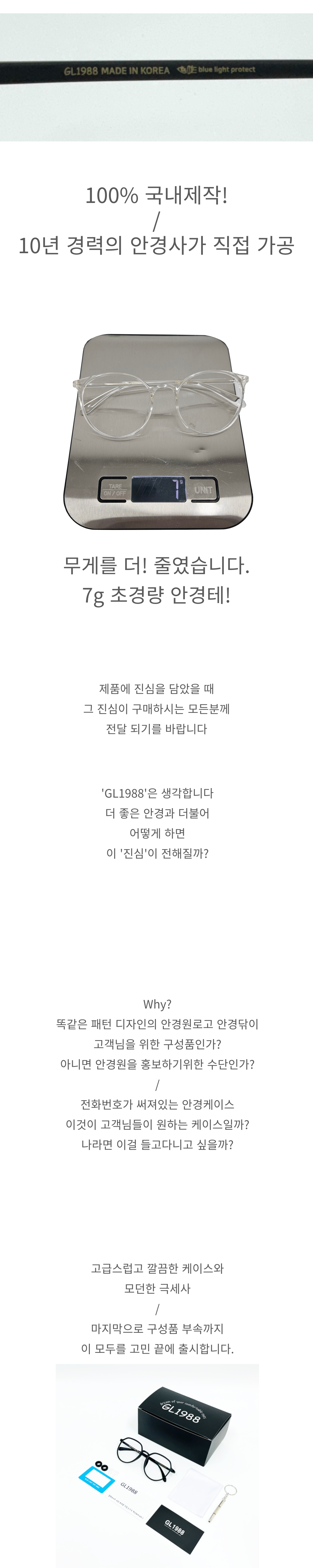 GL1988多邊形眼鏡,來自韓國的精湛工藝,打造僅7g的超輕量鏡框,配戴舒適無負擔。獨特的多邊形設計,搭配C.1霧面黑配色,展現低調時尚品味。鏡框採用TR-90材質,不易變形,經久耐用。內置防藍光鏡片,有效阻擋有害藍光,舒緩長時間使用電子產品造成的疲勞。附贈精美眼鏡盒與擦拭布,提供完善的保護與清潔。