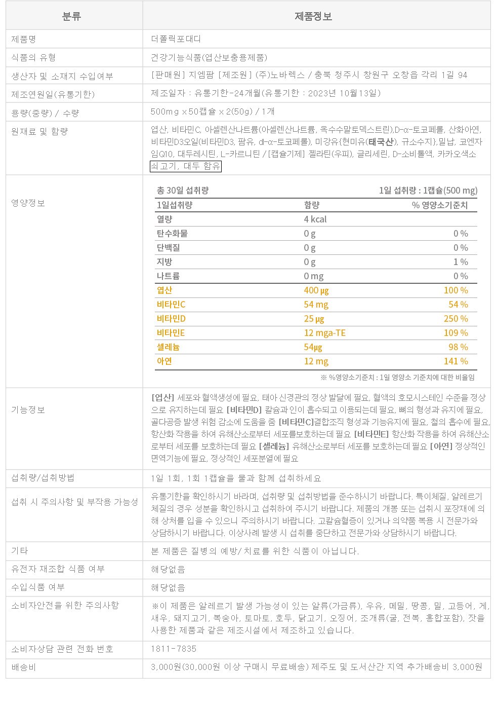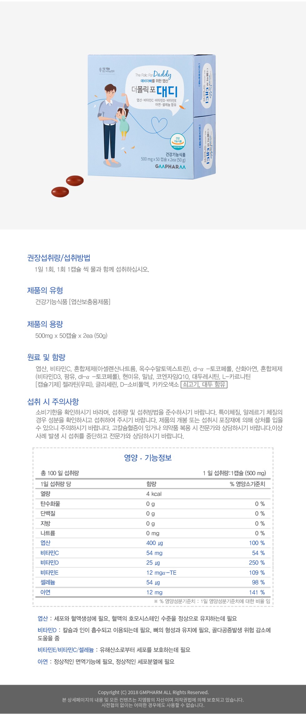 GMPHARM The Folic For Daddy葉酸綜合維他命保健食品, 50顆, 8盒