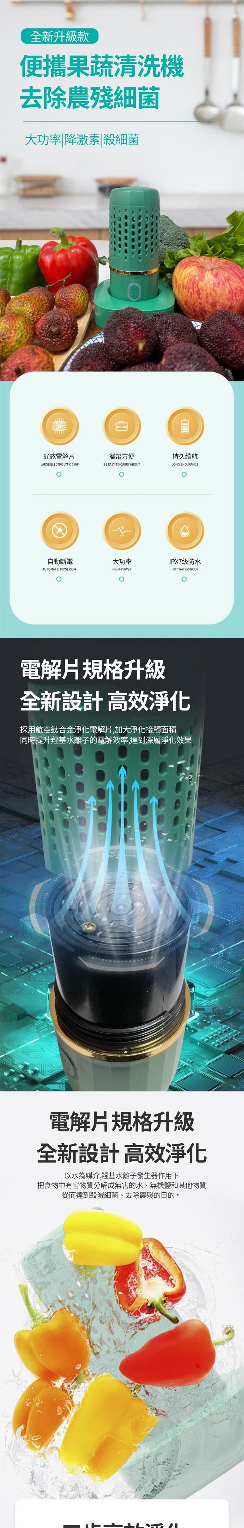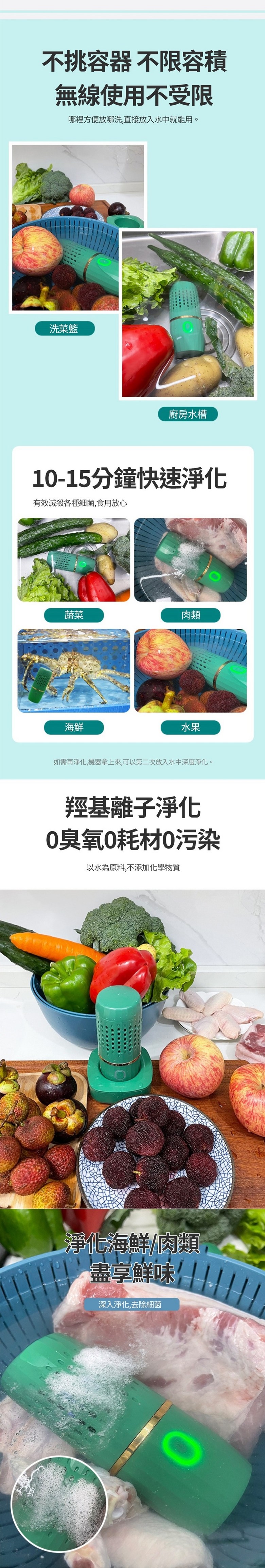 GO洗蔬果機 蔬果淨化器 食材水果清洗機 自動洗菜機 無線便攜, 綠色