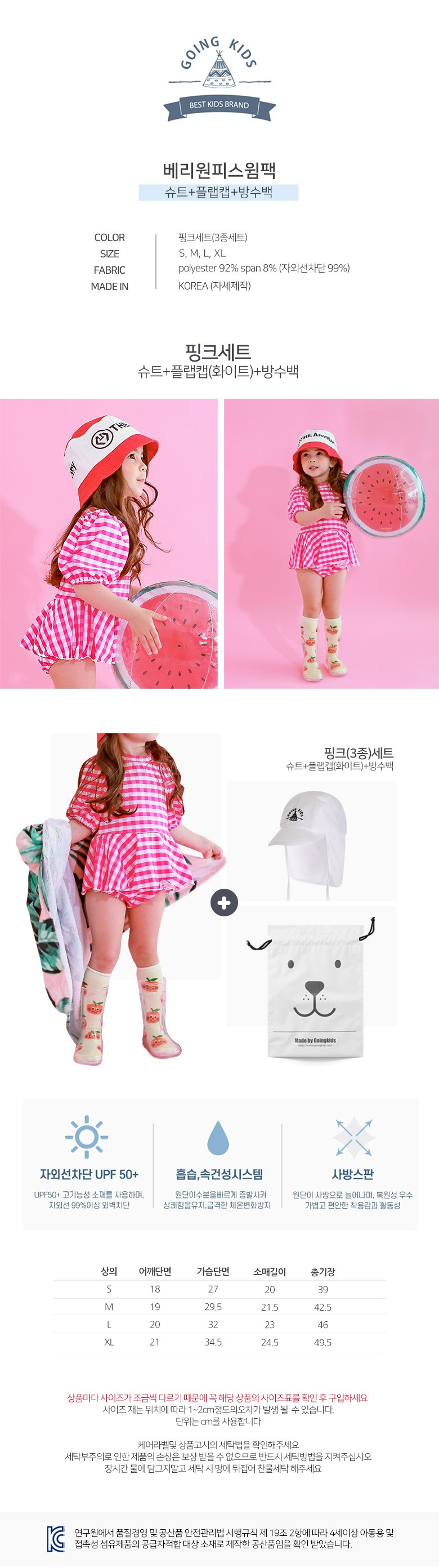 GOING KIDS 童款連身泳裝+防曬帽+防水收納袋組