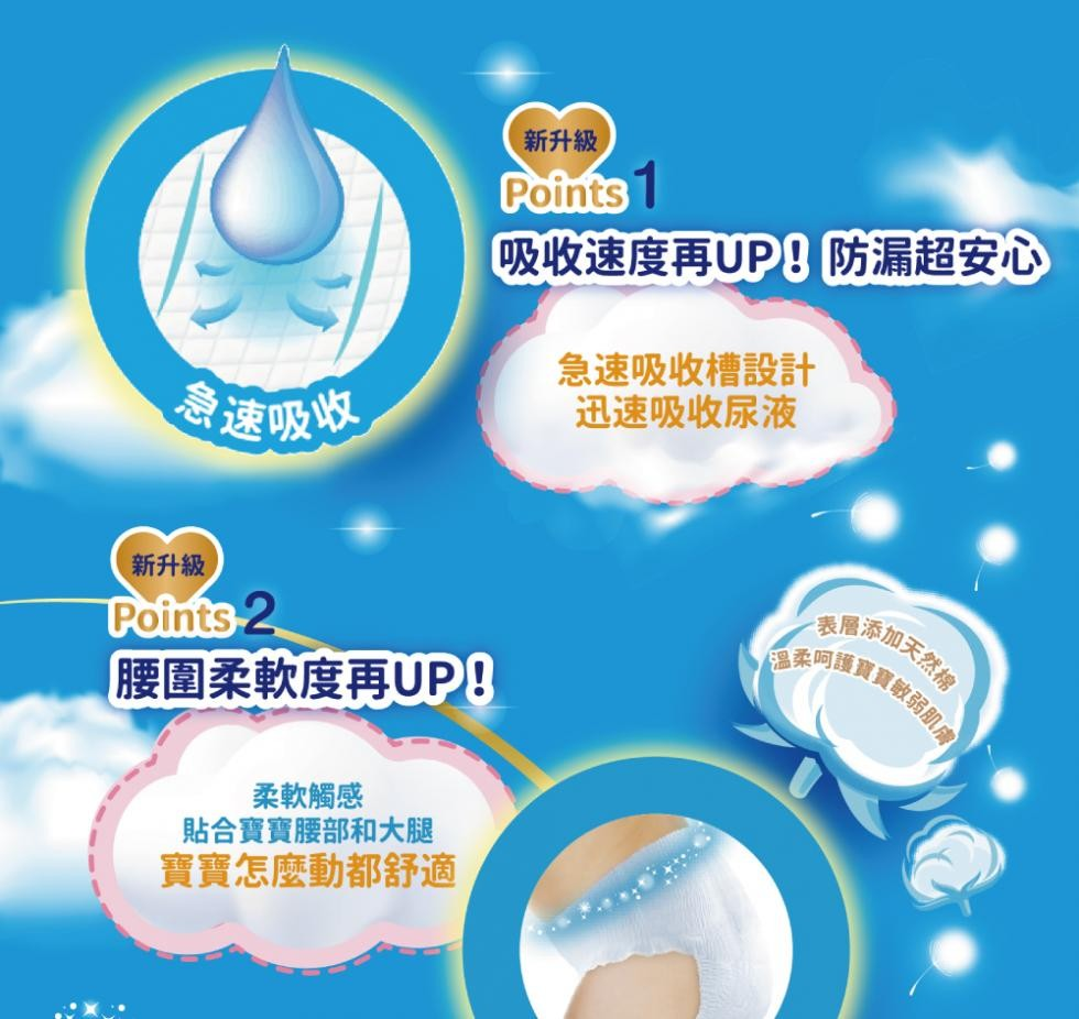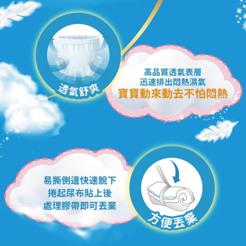 - 褲型設計方便穿脫,就像小內褲一樣,讓寶寶活動自如,盡情探索世界,玩得開心又舒適。