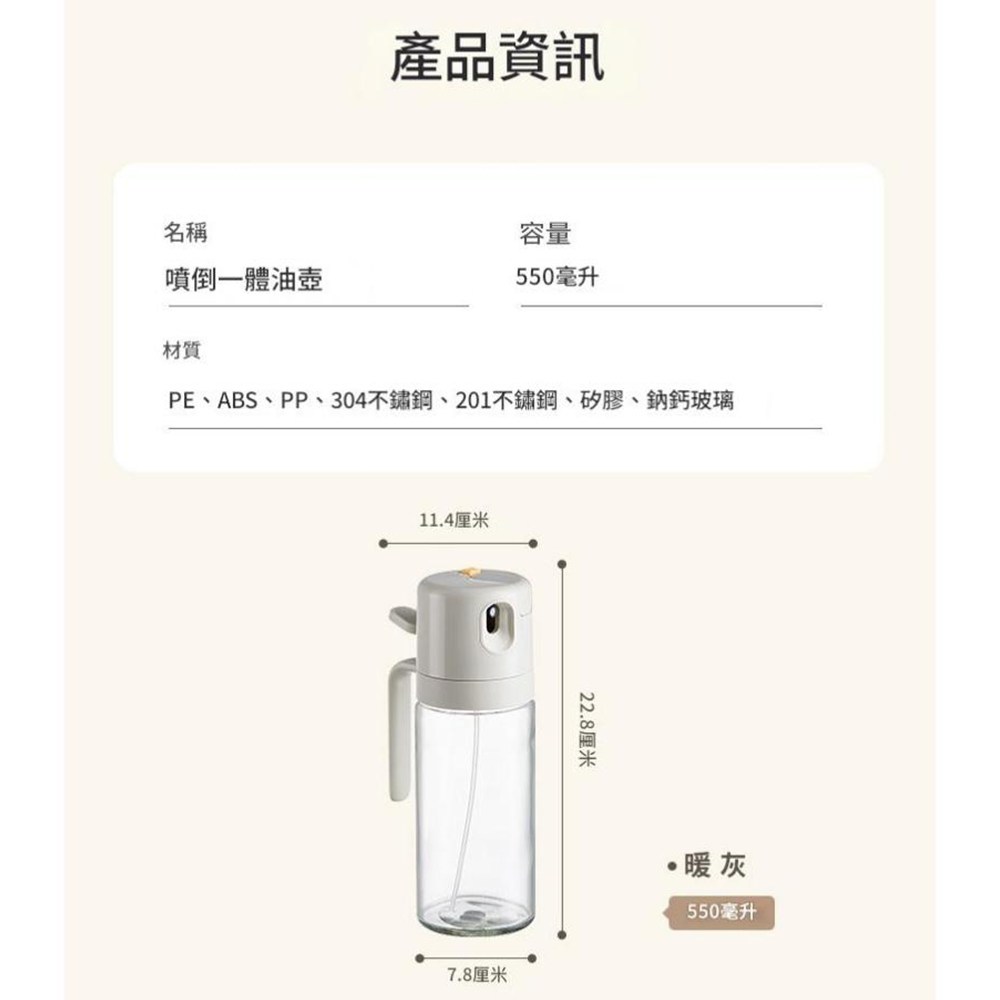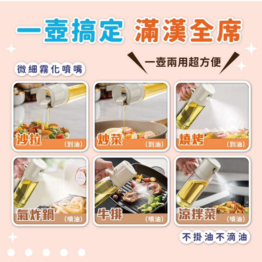 - 獨特二合一設計,輕鬆切換倒油與噴油模式,滿足多樣烹飪需求。