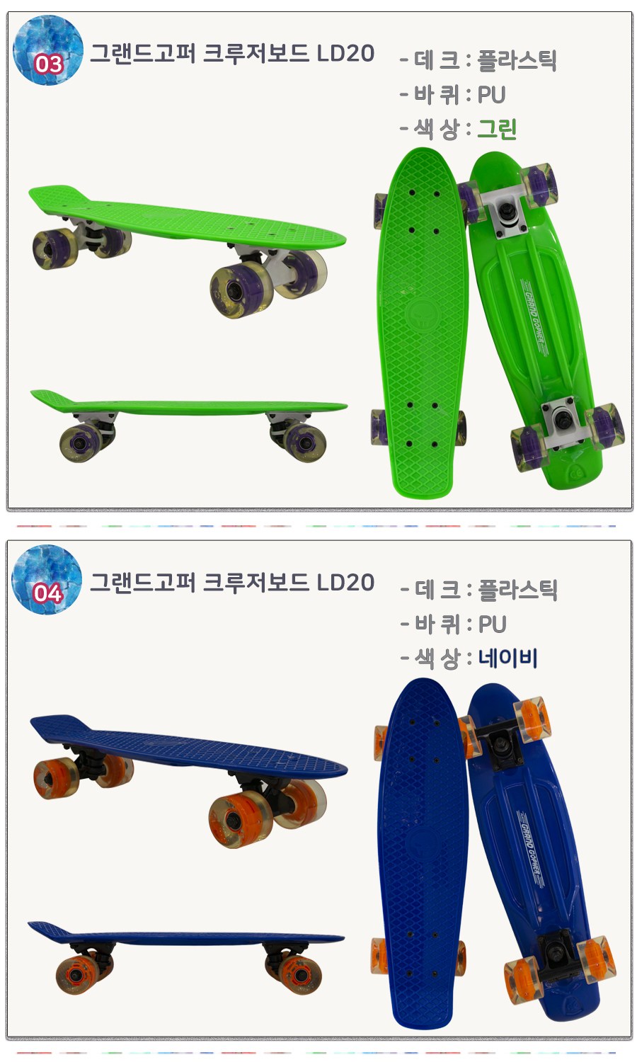 GRAND GOPHER LED輪巡洋艦板LD20,採用強化塑膠板面,提供卓越的彈性和穩定性,讓您輕鬆上手。高強度鋁合金輪架堅固耐用,確保滑行時的穩定性與安全性。聚氨酯LED輪不僅耐磨,更能在滑行時發光,增加夜間可見度。蜂巢紋防滑板面設計,提升抓地力,讓您享受更安全的滑行體驗。無論是休閒巡航還是挑戰新技巧,GRAND GOPHER巡洋艦板都是您的理想選擇。