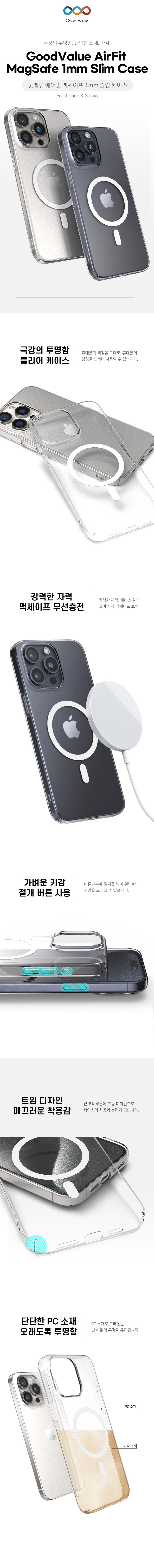 GoodValue 不變色AirFit MagSafe超薄手機殼,專為Galaxy S24 Ultra設計,採用堅固的PC材質,能長久保持透明,完整呈現手機原有色彩質感。手機殼內部添加微點圖案,可有效防止油膜現象。按鈕部分採用開口設計,讓您能感受到完美的按鍵感。此外,它還具備強力磁吸 MagSafe 功能,兼容無線充電,無需取下手機殼即可充電。底部角落的開口設計,讓手機殼的安裝與拆卸更加容易。