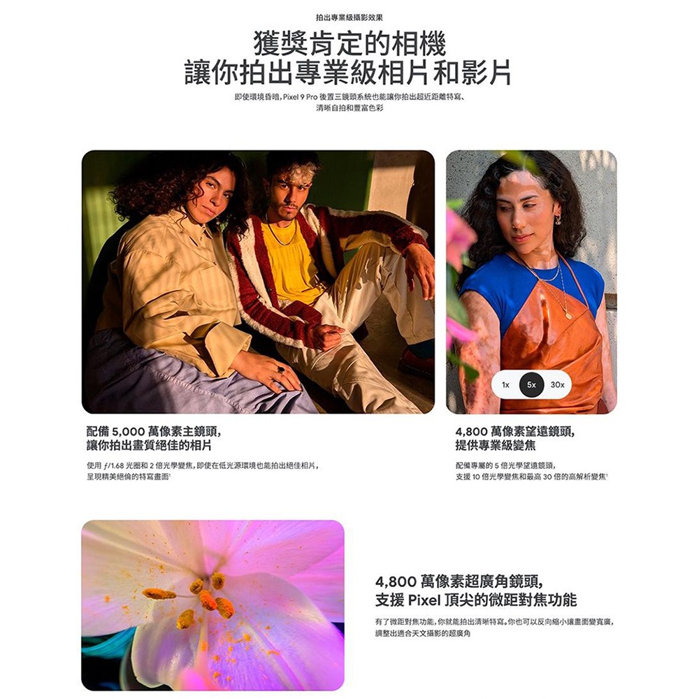 Google Pixel 9 Pro XL 是一款設計精緻、效能強大的智慧型手機。曜石黑配色搭配光澤柔順的霧面背蓋,外型優雅動人。Pro級模式支援進階相機設定,輕鬆拍出專業大師級相片。內建Gemini AI助理,隨時解答生活大小事,讓您迅速掌握資訊。配備頂尖晶片,效能無比強大,享有7年的功能更新服務。