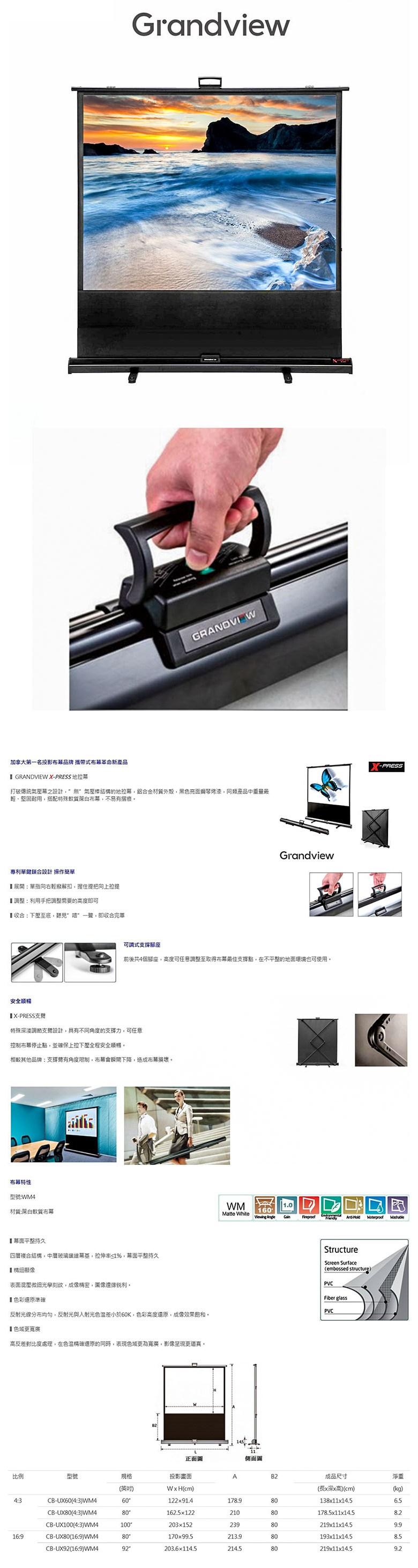 Grandview X-Press 地拉幕 CB-UX92(16:9)WM4 可攜式布幕 92吋行動幕
