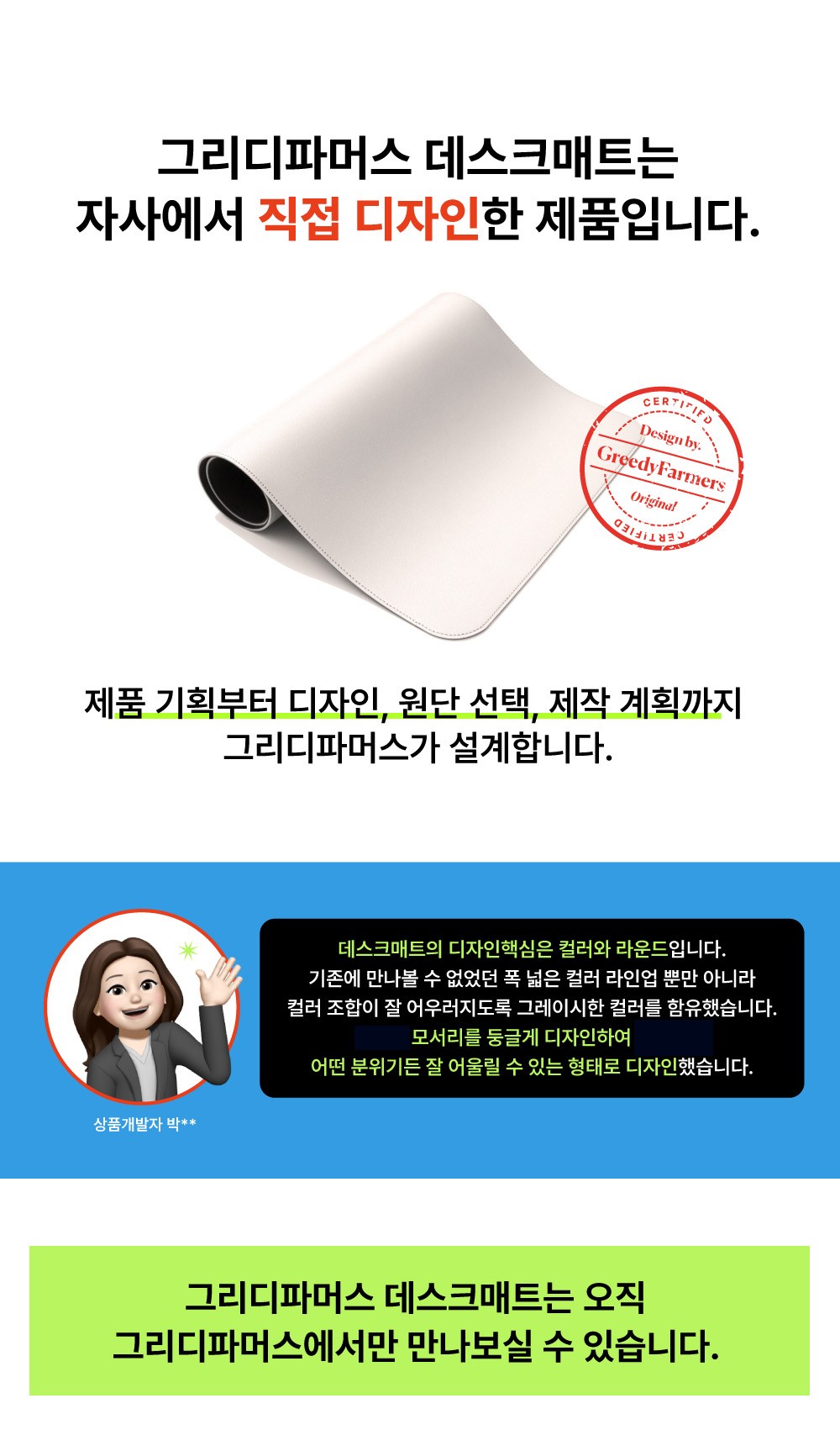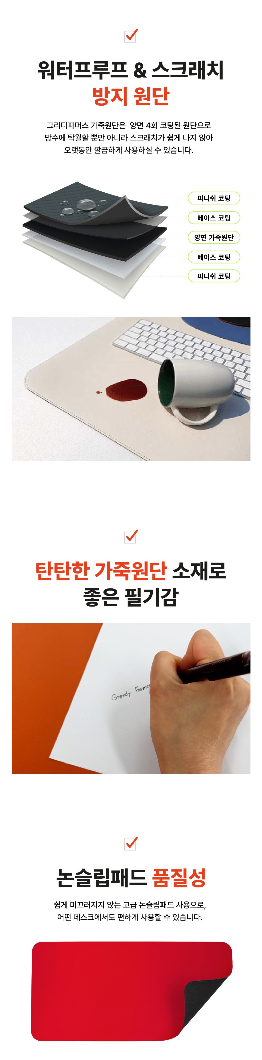 Greedy Farmers皮革桌墊採用雙面四層塗層皮革布料,具備優異的防水與防刮性能,能長久保持桌墊的潔淨。多達19種顏色選擇,讓您輕鬆打造獨一無二的專屬空間。防滑墊設計,確保桌墊在任何桌面上都能穩固使用,提供舒適的使用體驗。圓角設計使其能夠融入任何氛圍。無論是辦公或居家使用,都能提升空間質感與工作效率。