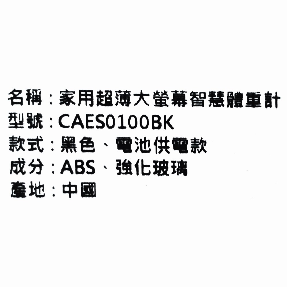 LifeShopping 家用超薄大螢幕智慧體重計,CAES0100BK,黑色,是您健康管理的得力助手。這款體重計採用超薄設計,不僅美觀大方,而且節省空間。大螢幕顯示清晰易讀,即使在光線不足的環境下也能輕鬆查看測量結果。它不僅能測量體重,還能測量體脂肪,幫助您更全面地了解身體狀況。精確度高達100g,最大承重180kg,滿足不同人群的需求。使用4號電池供電,方便更換,讓您隨時掌握健康數據。
