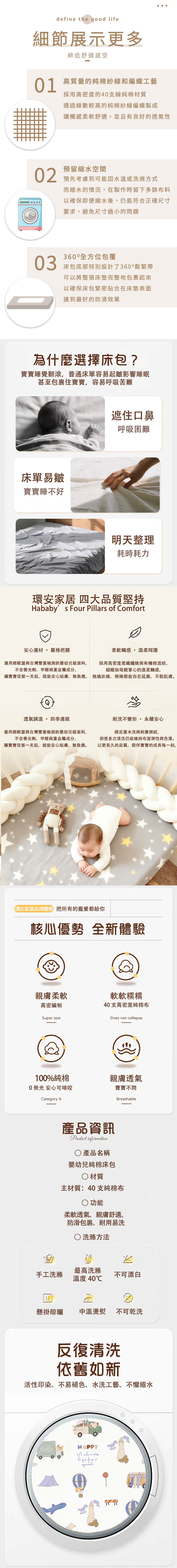 - 尺寸適用於一般嬰兒床,安裝簡便,輕鬆更換床包,方便媽媽日常清潔維護。