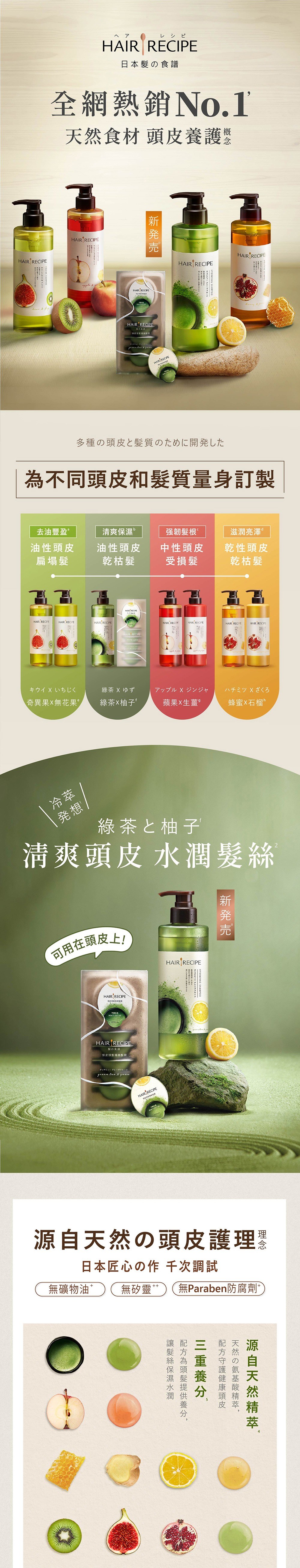 - 蘋果生薑配方,髮的食譜潤髮乳能溫和滋養頭皮,讓秀髮散發自然光澤與活力。