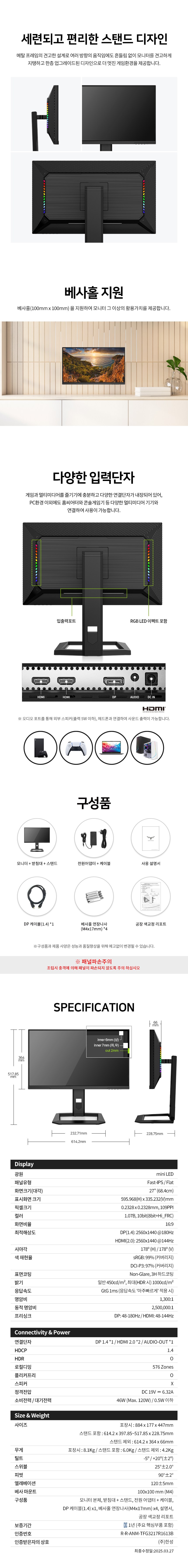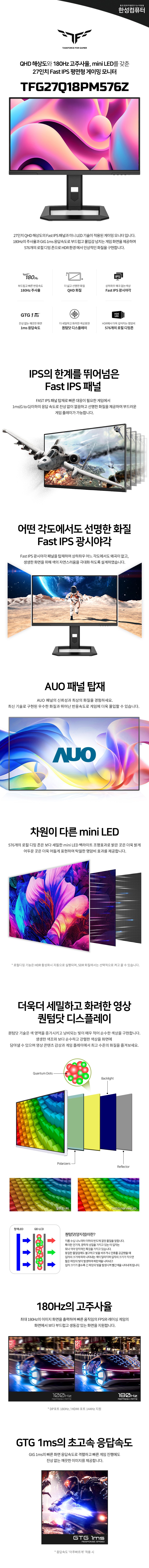 HANSUNG SUPERSTORE TFG27Q18PM576Z是一款27吋QHD電競顯示器,採用Fast IPS面板和mini LED技術。它擁有180Hz高刷新率和1ms反應時間,提供流暢的遊戲體驗。576個局部調光區域,在HDR環境下實現令人印象深刻的畫質。Fast IPS廣視角面板確保從任何角度觀看都無失真,色彩自然生動。無論是玩遊戲還是觀看影片,都能享受卓越的視覺效果。