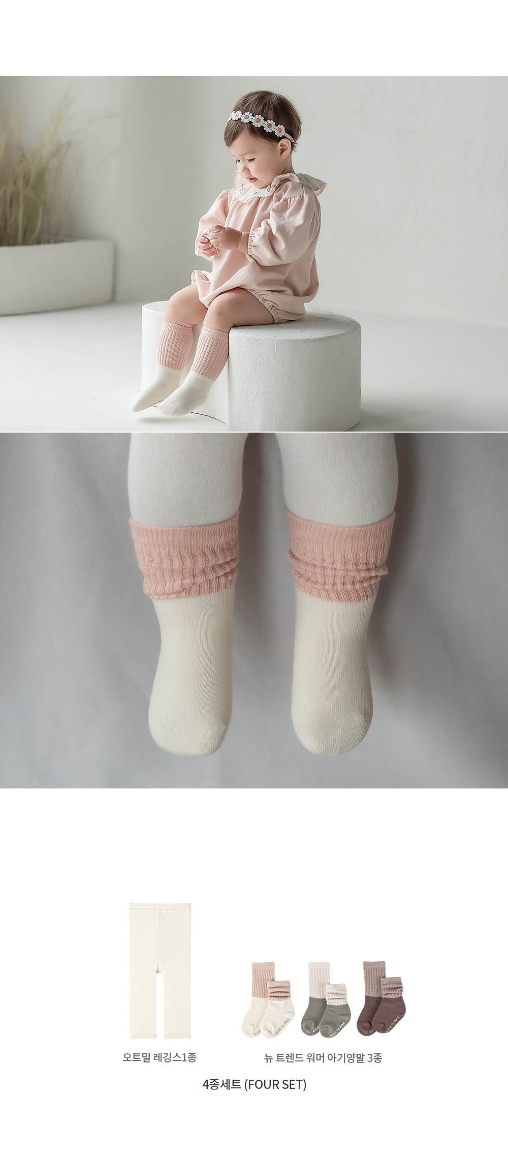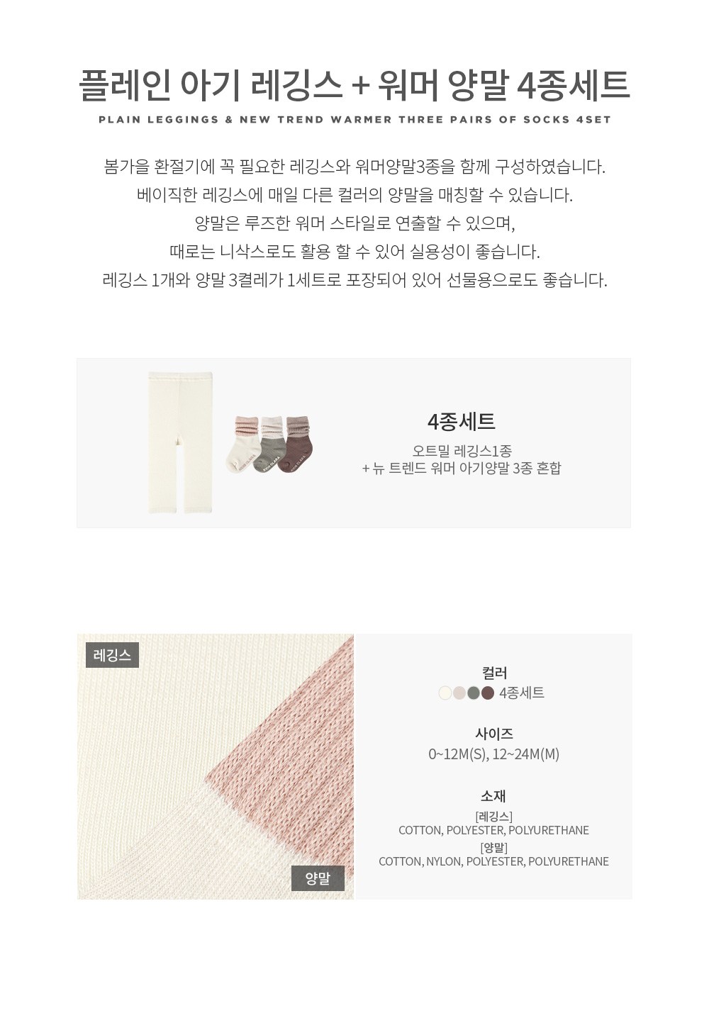 HAPPY PRINCE 嬰兒素色緊身褲+保暖襪4件組