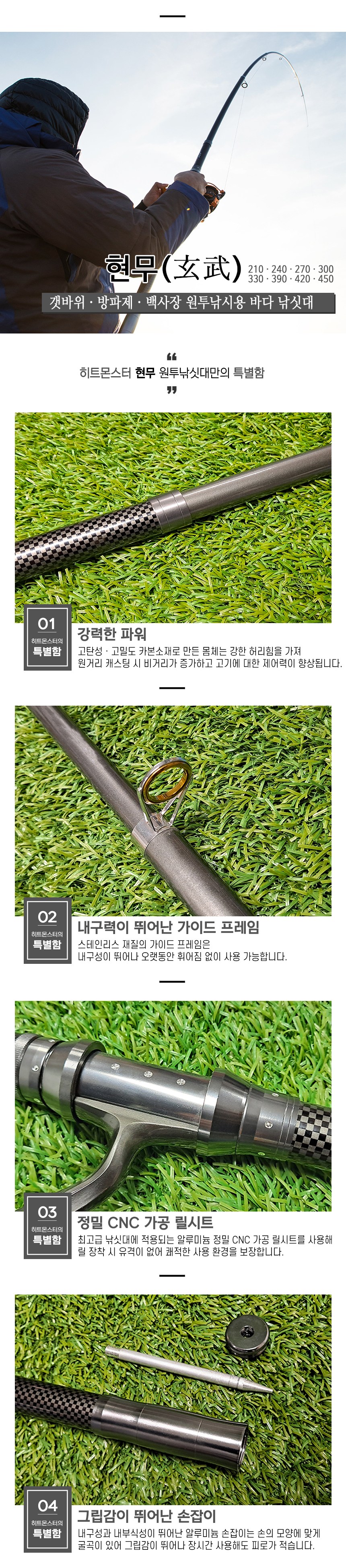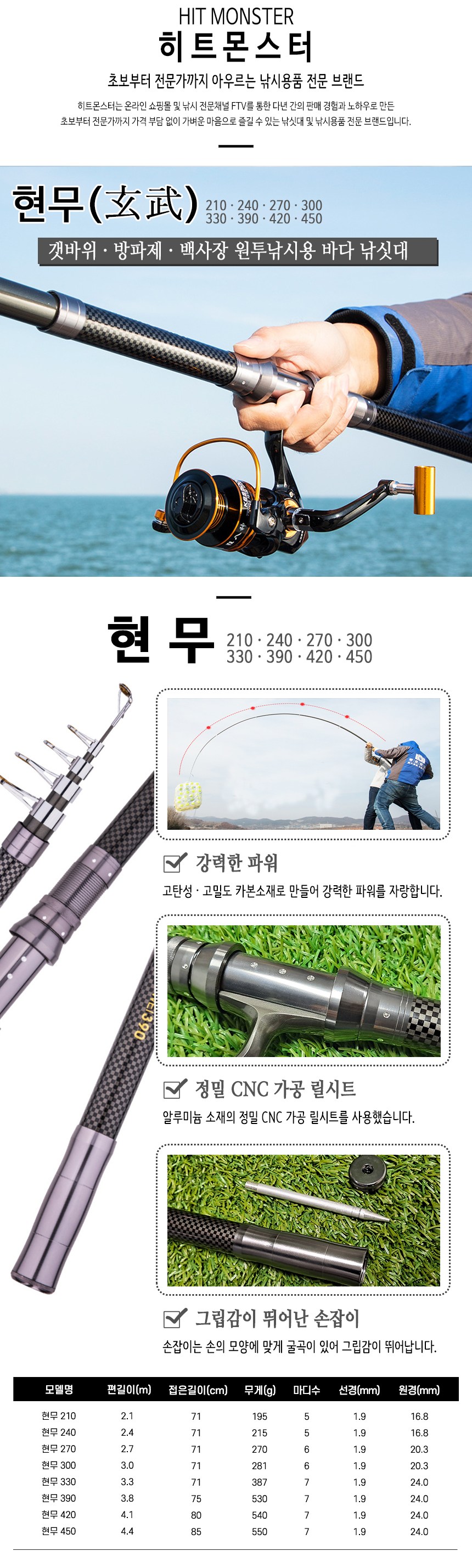 HIT MONSTER玄武長投釣竿是專為磯釣、防波堤和沙灘遠投設計的海釣竿。採用高彈性、高密度碳纖維材質,提供強大的力量和腰力,讓您在遠投時能輕鬆增加拋投距離,並有效控制魚隻。精密CNC加工的鋁合金捲線器座,確保捲線器安裝牢固無間隙,提供舒適的使用體驗。握把根據手型設計,握感極佳,即使長時間使用也不易感到疲勞。不鏽鋼導環框架耐用性卓越,確保長時間使用不彎曲。