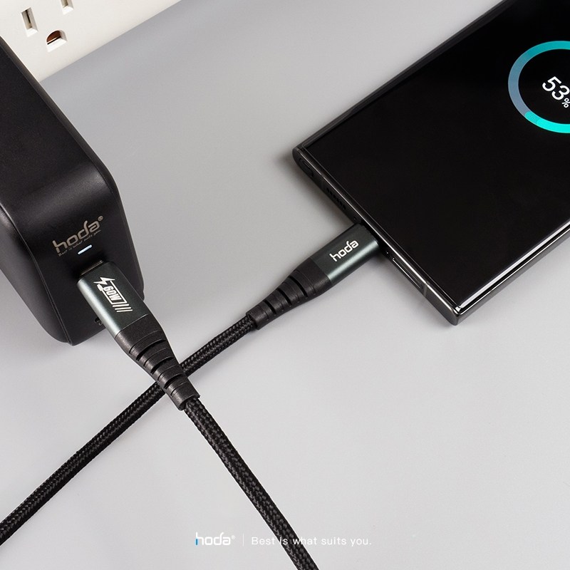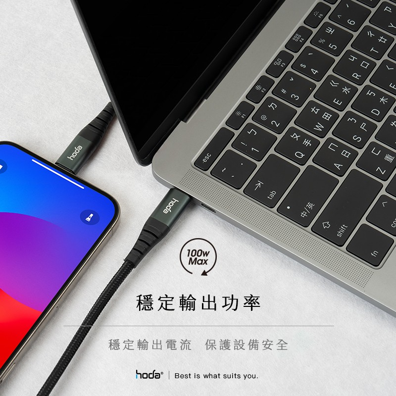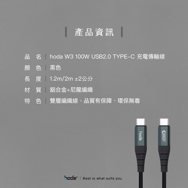 hoda W3 編織 USB-C to C 數據線,採用高品質編織工藝,不僅外觀時尚,更提供卓越的耐用性,不易纏繞打結。這款數據線支援 20V/5A 的高功率輸出,最高可達 100W,能為您的手機、平板電腦和筆記型電腦快速充電,節省寶貴的時間。內建 E-marker 晶片,智能調節電流,確保設備充電安全穩定。120cm 的長度,無論在家中、辦公室或旅途中,都能滿足您的充電需求。黑色簡約設計,完美搭配您的各種設備,讓充電也能成為一種享受。
