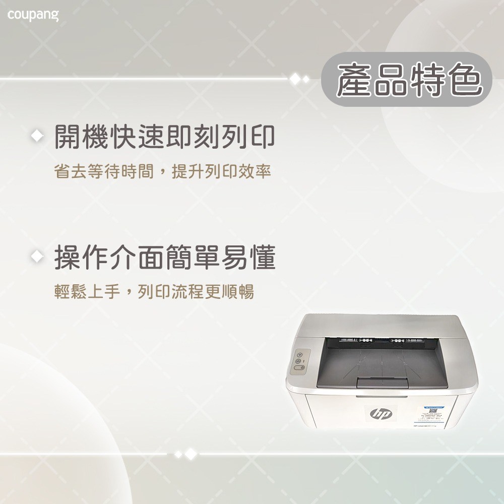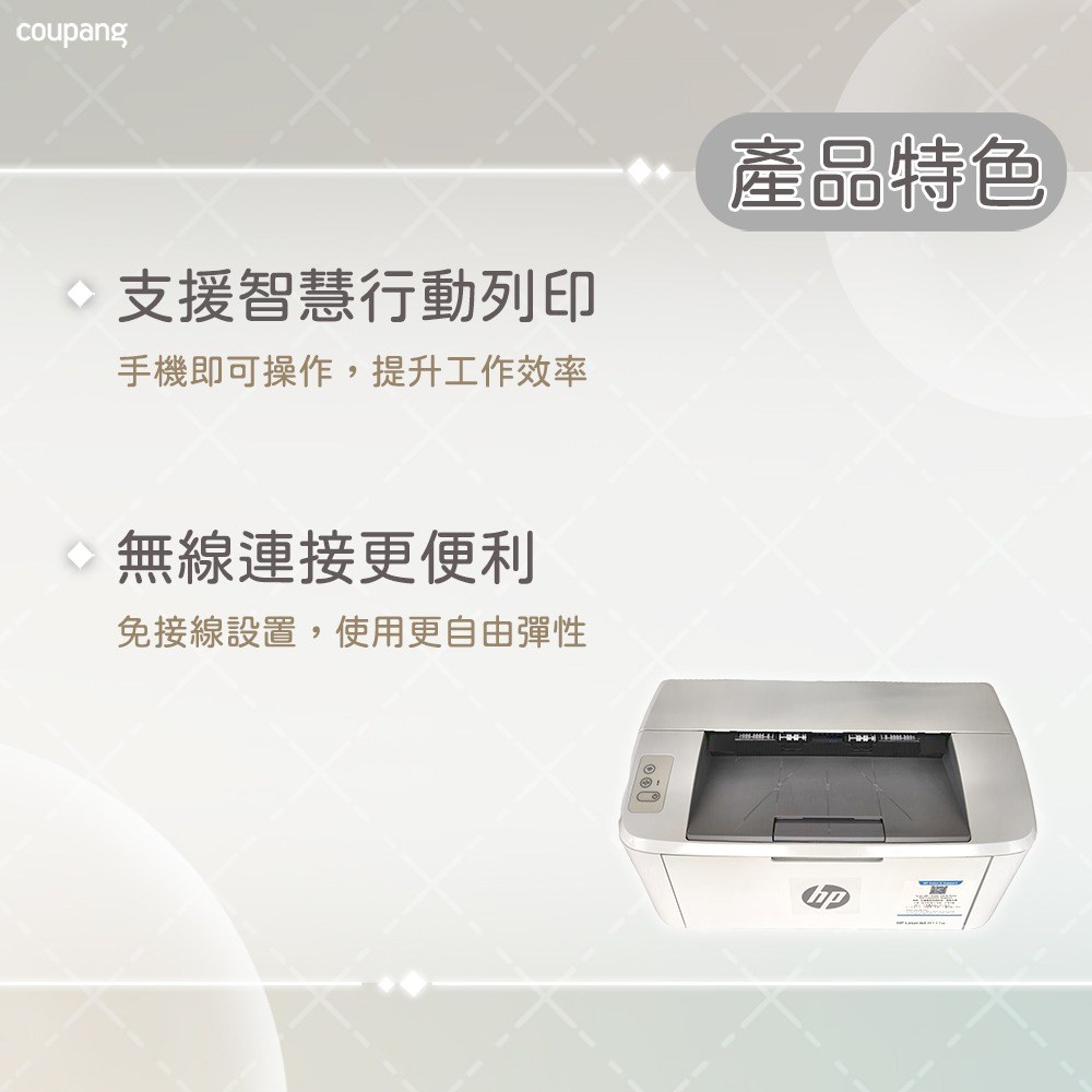 HP 惠普 LaserJet M111w 無線雷射印表機是一款專為現代辦公室和家庭設計的輕巧型印表機。它具備無線連接功能,讓您可以隨時隨地輕鬆列印文件,擺脫線纜的束縛。高速列印能力可節省您的寶貴時間,而高品質的列印效果則確保您的文件清晰銳利。此外,它還支援多種紙張尺寸,滿足不同的列印需求。操作簡單易上手,即使是初次使用者也能快速掌握。