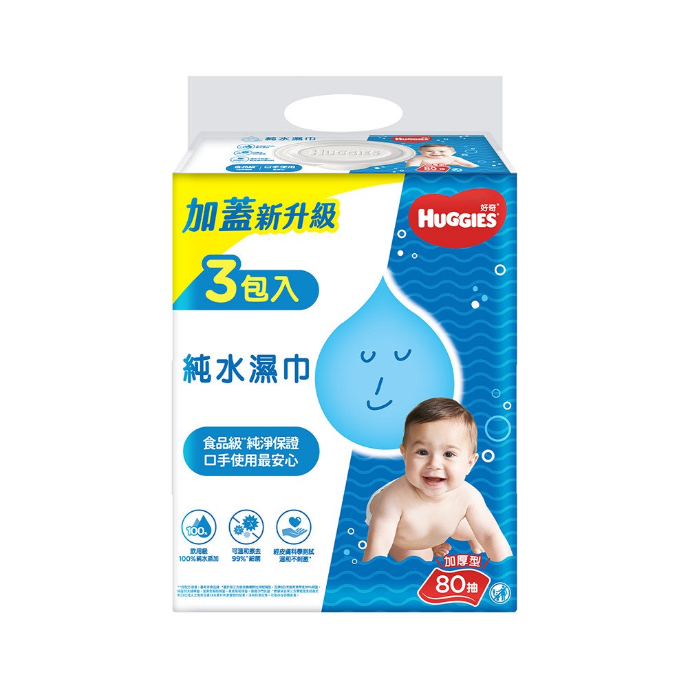 HUGGIES 好奇純水嬰兒濕巾,給寶寶最溫柔的呵護。這款加厚型濕巾,採用100%純水,不含酒精、香精等刺激成分,溫和不刺激寶寶嬌嫩的肌膚,讓您安心使用。每包含80抽,箱裝共18包,超值大容量,方便媽媽們長期使用。濕巾經過皮膚科醫生測試,可有效去除99%的細菌,保持寶寶肌膚清潔乾淨。食品級純淨保證,讓寶寶擦拭口手也安心。