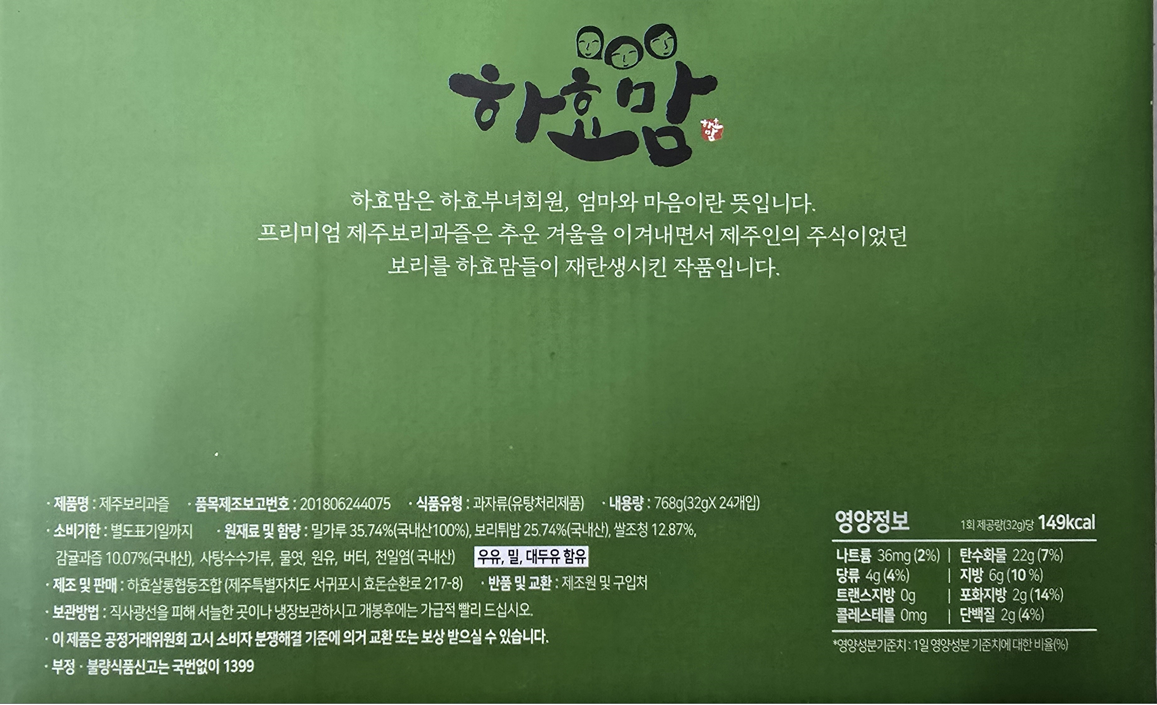 孝心媽媽濟州大麥菓條,嚴選濟州島優質大麥與國產小麥,融合傳統工藝與現代技術,打造出獨特風味的韓式點心。菓條口感酥脆,散發淡淡柑橘香氣,搭配麥芽糖的自然甜味,令人回味無窮。獨立小包裝設計,方便攜帶與保存,隨時享受美味。無論是搭配茶飲或咖啡,都是絕佳的選擇,更是饋贈親友的健康伴手禮。讓您在忙碌的生活中,也能輕鬆品嚐到來自濟州島的 authentic 滋味。
