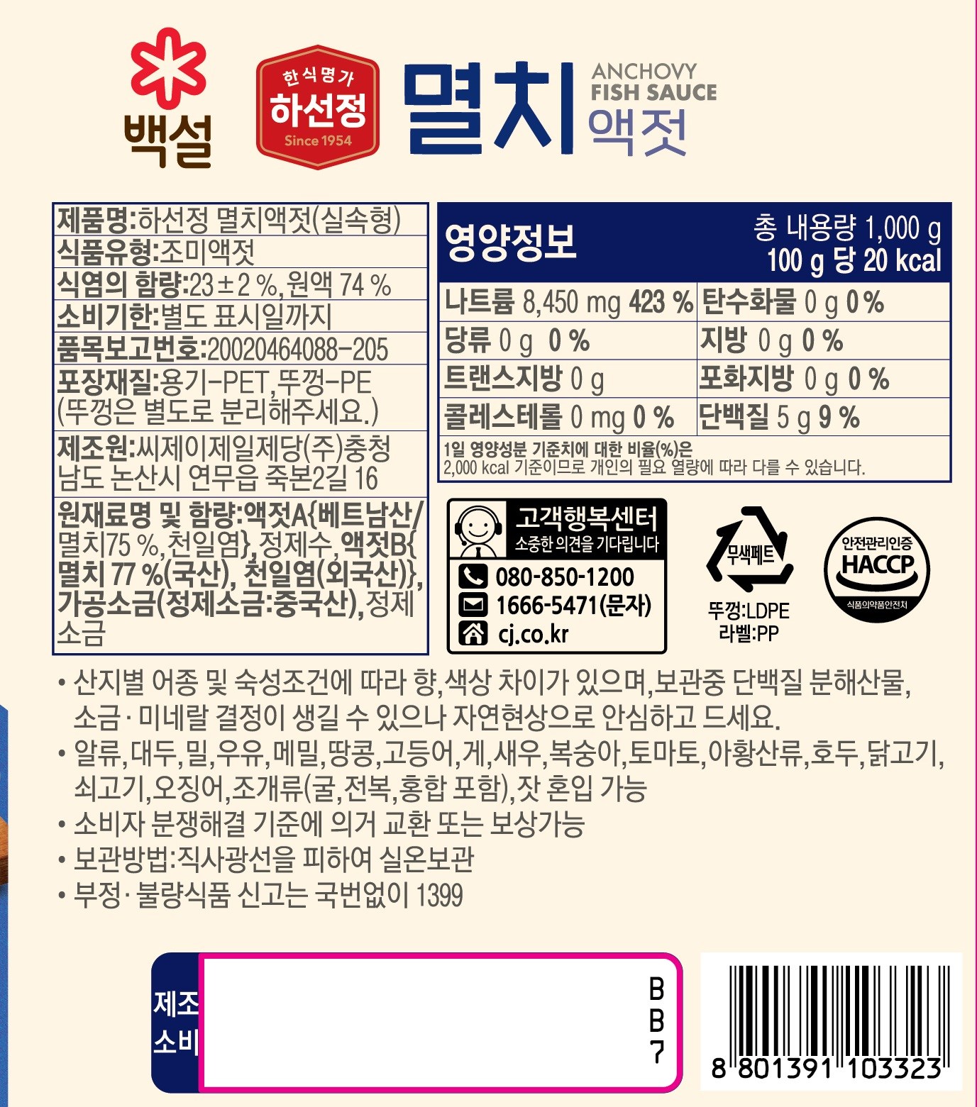 Hasseonjeong經濟型鯷魚魚露,經過精心發酵而成,為您的料理帶來豐富的鮮味。這款魚露不僅能提升食物原有的風味,還能廣泛應用於各種韓式料理,例如製作美味的泡菜或是在湯品中代替鹽和醬油,讓您輕鬆烹調出專業級的美味。大容量包裝經濟實惠,非常適合家庭使用,讓您隨時都能享受道地的韓式風味。無論是新手還是料理達人,都能輕鬆上手,為您的餐桌增添更多美味選擇。開封後請務必冷藏保存,以確保最佳風味。