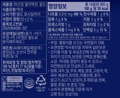 Hasunjung 鯷魚露 黃金, 800g, 4個