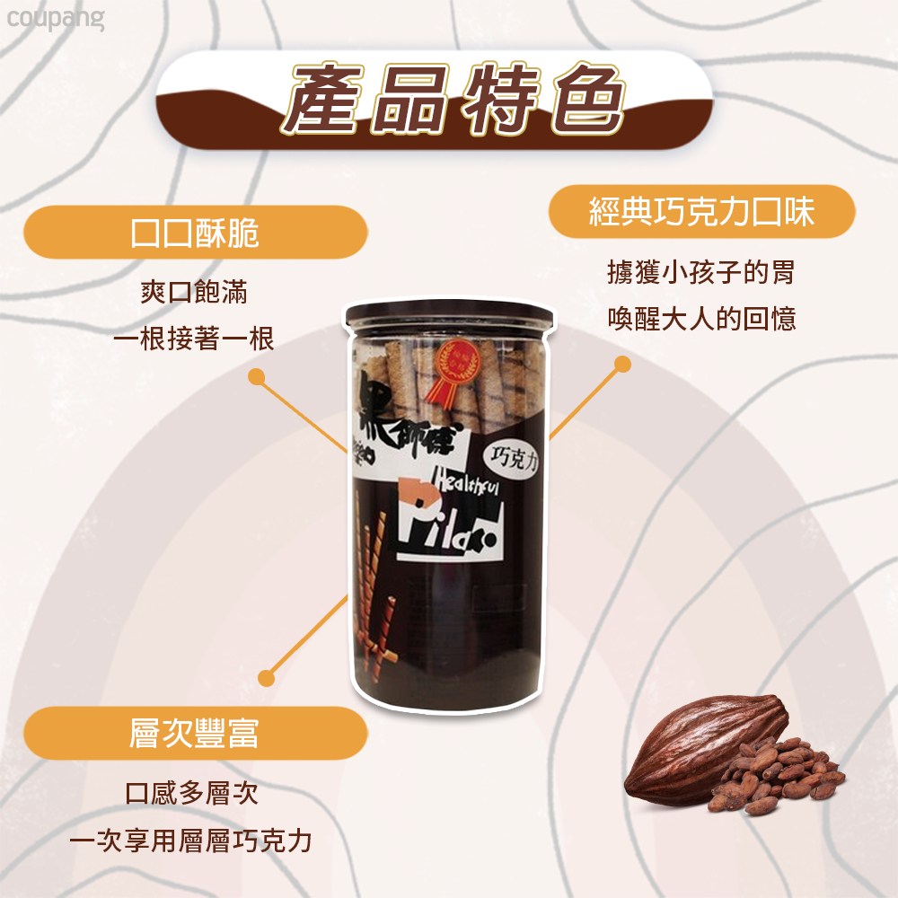 - 酥脆捲心酥,口感豐富,每一口都充滿濃郁的巧克力香氣,令人回味無窮。