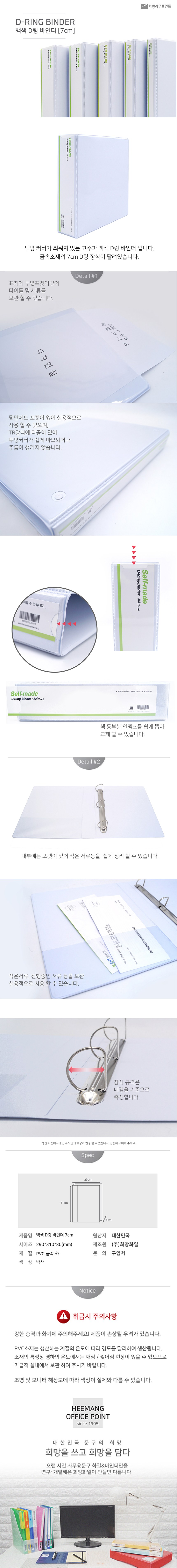 Heemang 3孔D環活頁夾是一款實用且多功能的辦公用品。採用高品質PVC材質製成,堅固耐用,能有效保護文件。7cm的D型環設計,提供充足的收納空間,方便整理大量文件。透明封面設計,可自行設計更換封面,展現個人風格。內側附有口袋,方便收納小文件,讓您的辦公桌面更加整潔有序。這款活頁夾是您辦公、學習的理想選擇。