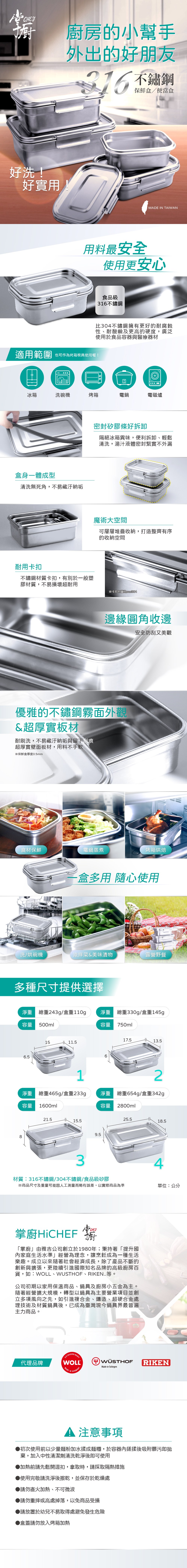 - - 採用316不鏽鋼材質,耐酸鹼抗腐蝕,讓您安心存放各式食材,保持食物新鮮。