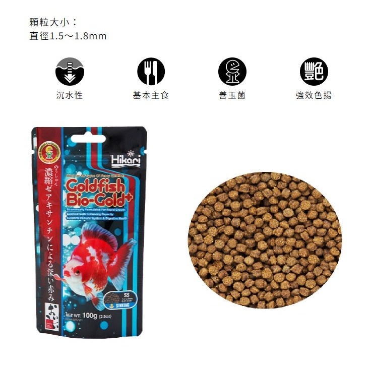 - 添加Hikari善玉菌,有助於維持消化系統健康,促進營養吸收,減少排泄物,保持水質清潔。