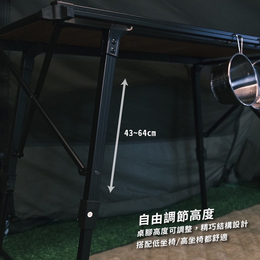 - 輕鬆調整高度,桌面穩固不晃動,野營用餐更舒適,享受戶外烹飪的樂趣。