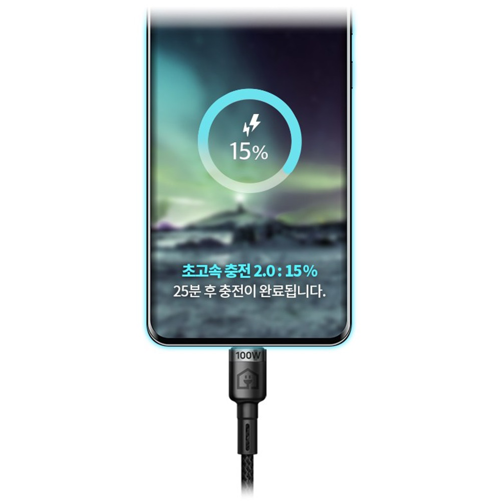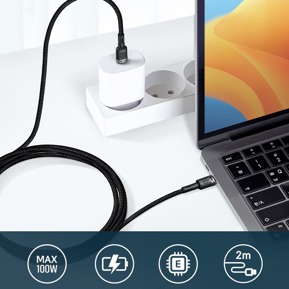 - 2公尺的線長設計,讓您在沙發、床上或辦公桌上都能輕鬆充電,不受距離限制。