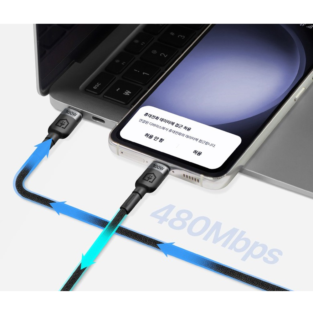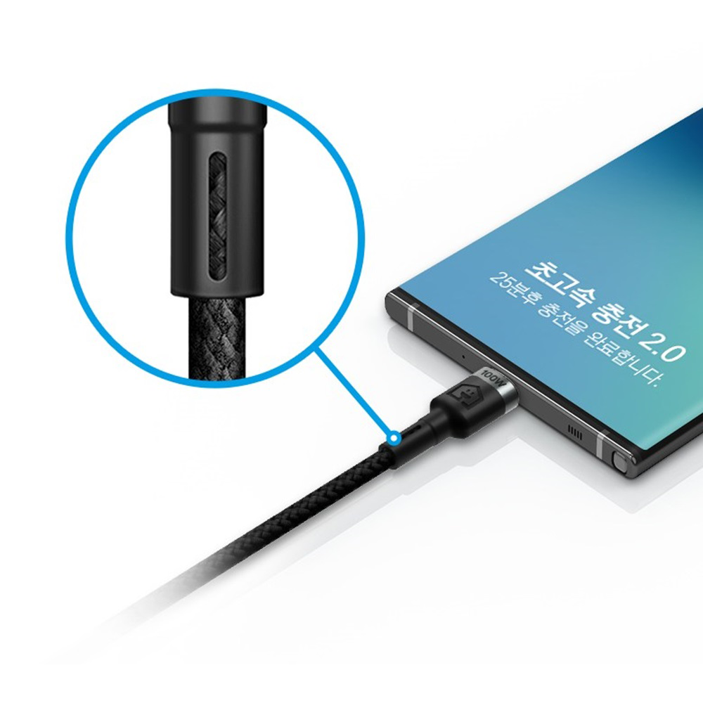 - 這款充電線採用耐用尼龍編織材質,有效防止線材纏繞與斷裂,延長使用壽命。