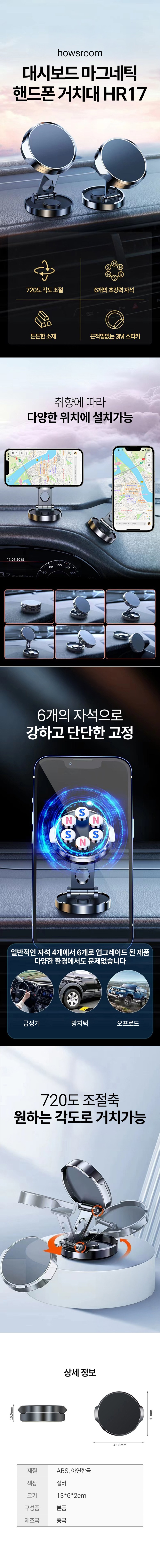 這款Howzroom儀錶板磁吸手機支架,採用六個超強力磁鐵,能穩固吸附您的手機,即使在緊急煞車或越野路況下也能保持穩定。720度角度調整設計,讓您可以根據個人喜好調整手機的觀看角度,提供最佳的視覺體驗。無痕3M貼紙,安裝簡便且不留殘膠,可隨意安裝在儀錶板上的不同位置。堅固的鋅合金材質,確保支架的耐用性。讓您在開車時也能輕鬆導航、安全通話。