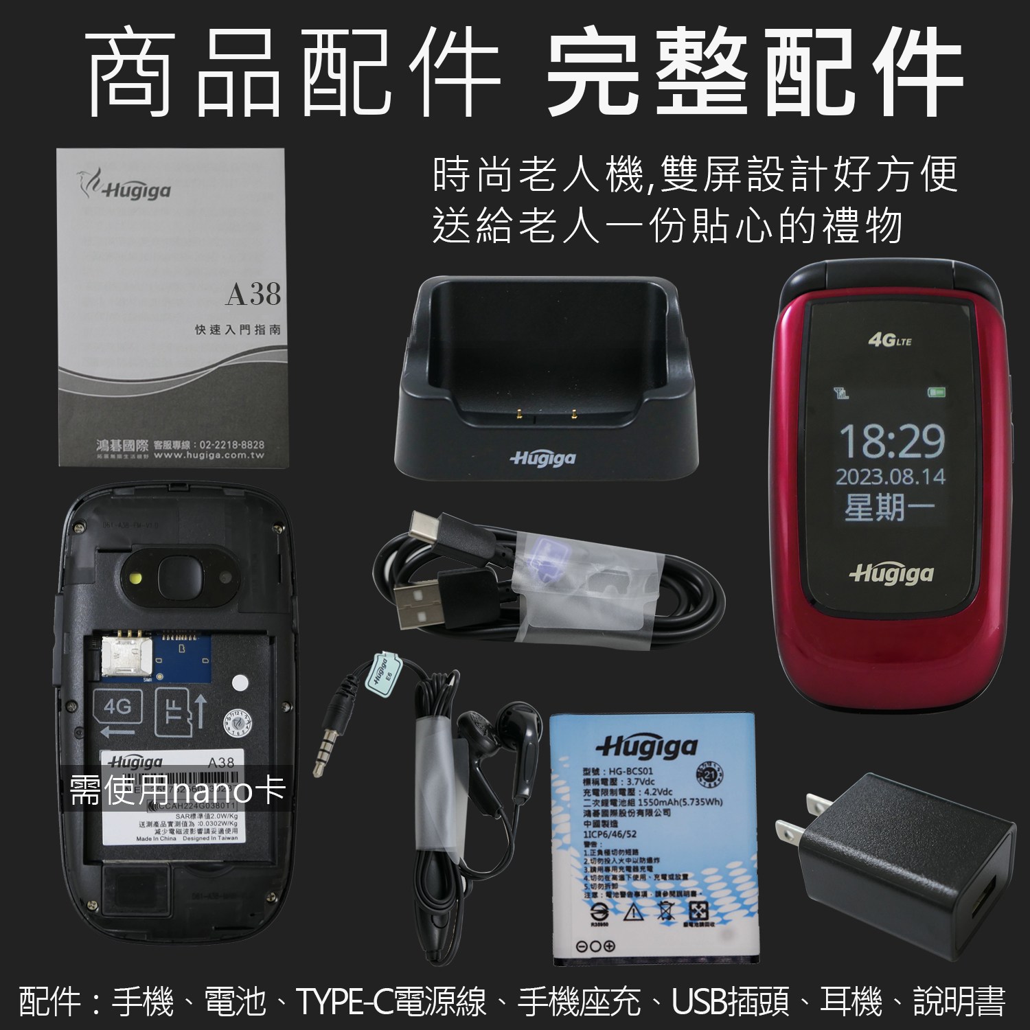 Hugiga 鴻碁國際 A38 大螢幕4G單卡折疊手機,專為長輩設計,操作簡單易上手。大螢幕顯示字體清晰,讓長輩閱讀無負擔,4G單卡支援通話穩定,隨時保持聯繫。折疊式設計輕巧好攜帶,外型時尚經典。公司貨品質保證,售後服務完善,讓您買得安心用得放心。黑色外觀沉穩大方,送禮自用皆宜。