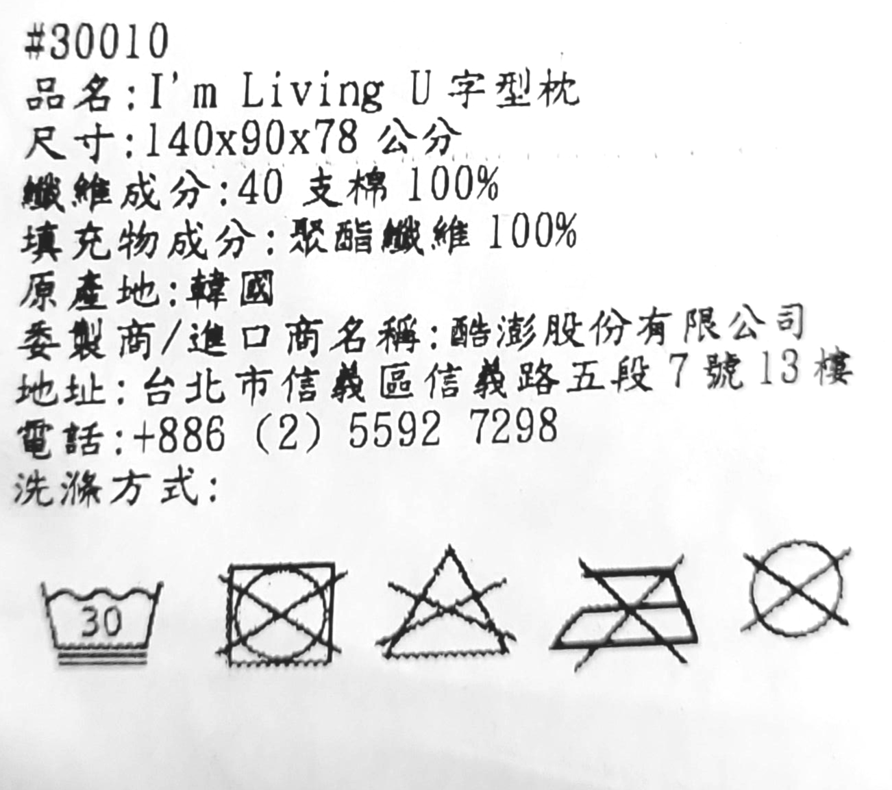 - 清洗方式: 30度水洗
