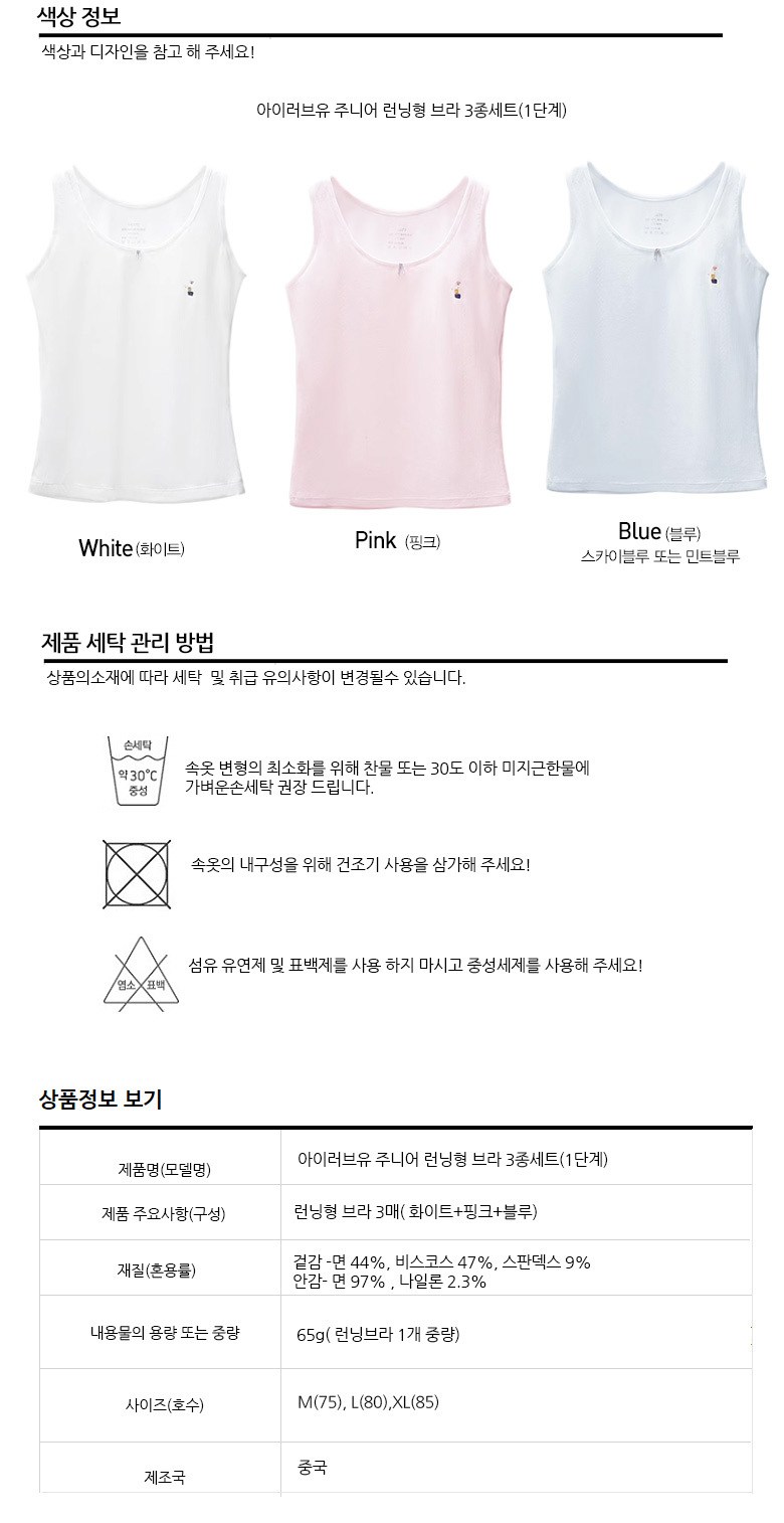 I LOVE YOU 女童用 第1階段 背心式 學生內衣 3件組