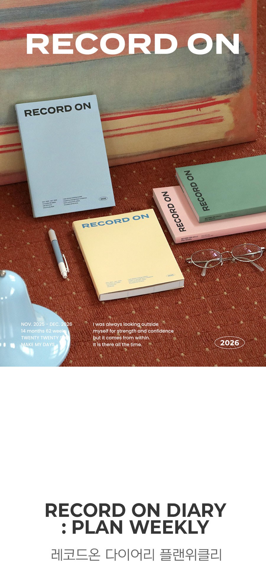 ICONIC 2026 Record On手帳,是您規劃生活的得力助手。採用A5尺寸設計,方便隨身攜帶,隨時記錄重要事項。奶油色PVC封面,簡約而有質感,展現您的獨特品味。內頁包含14個月的週計畫,助您輕鬆掌握每週行程,讓生活和工作更加有條不紊。無論是學生還是上班族,這款手帳都是您不可或缺的良伴。