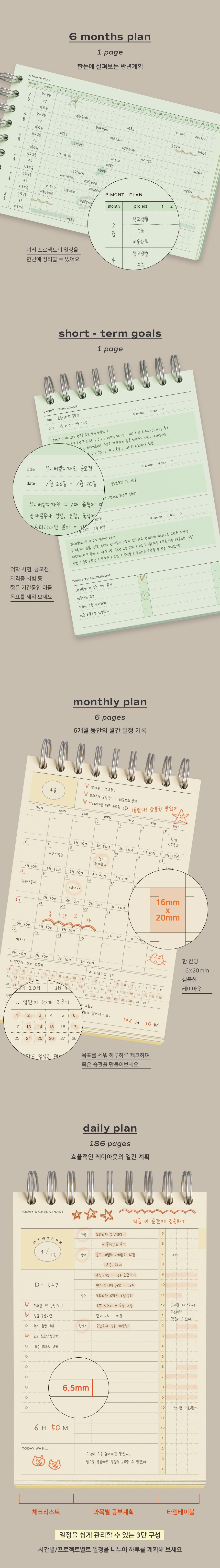 - 內頁採用三段構成版面,包含待辦清單、學習計畫與時間表,一日計畫一目瞭然,有效提升時間管理效率。