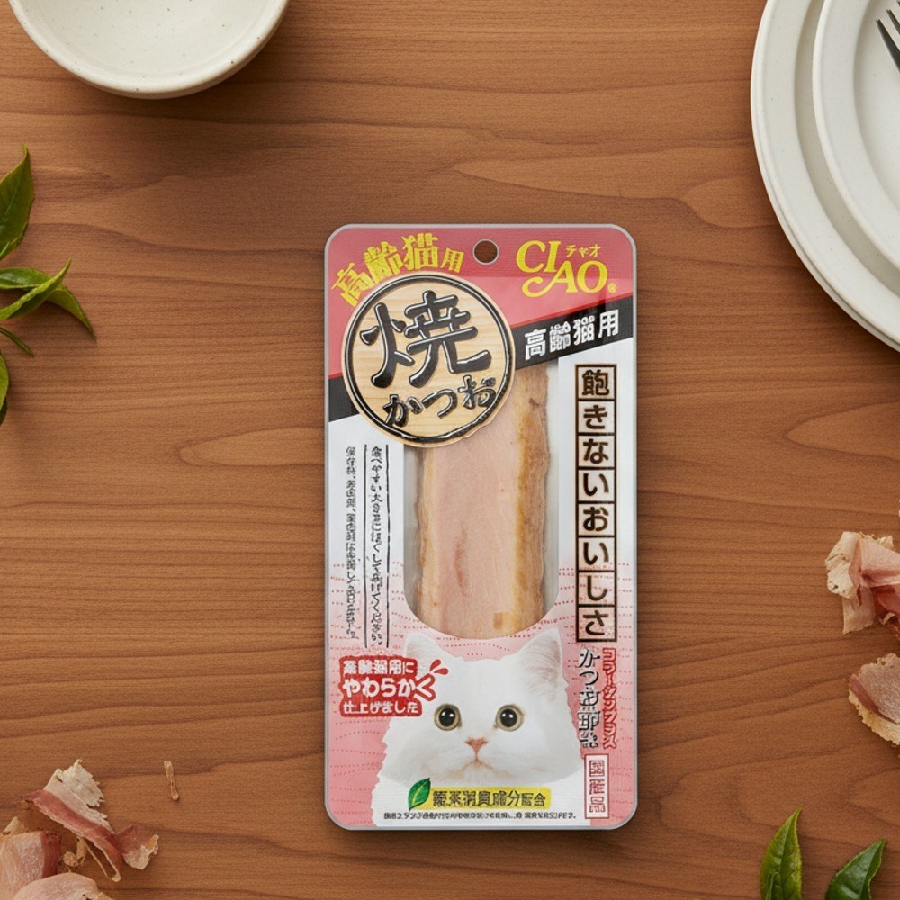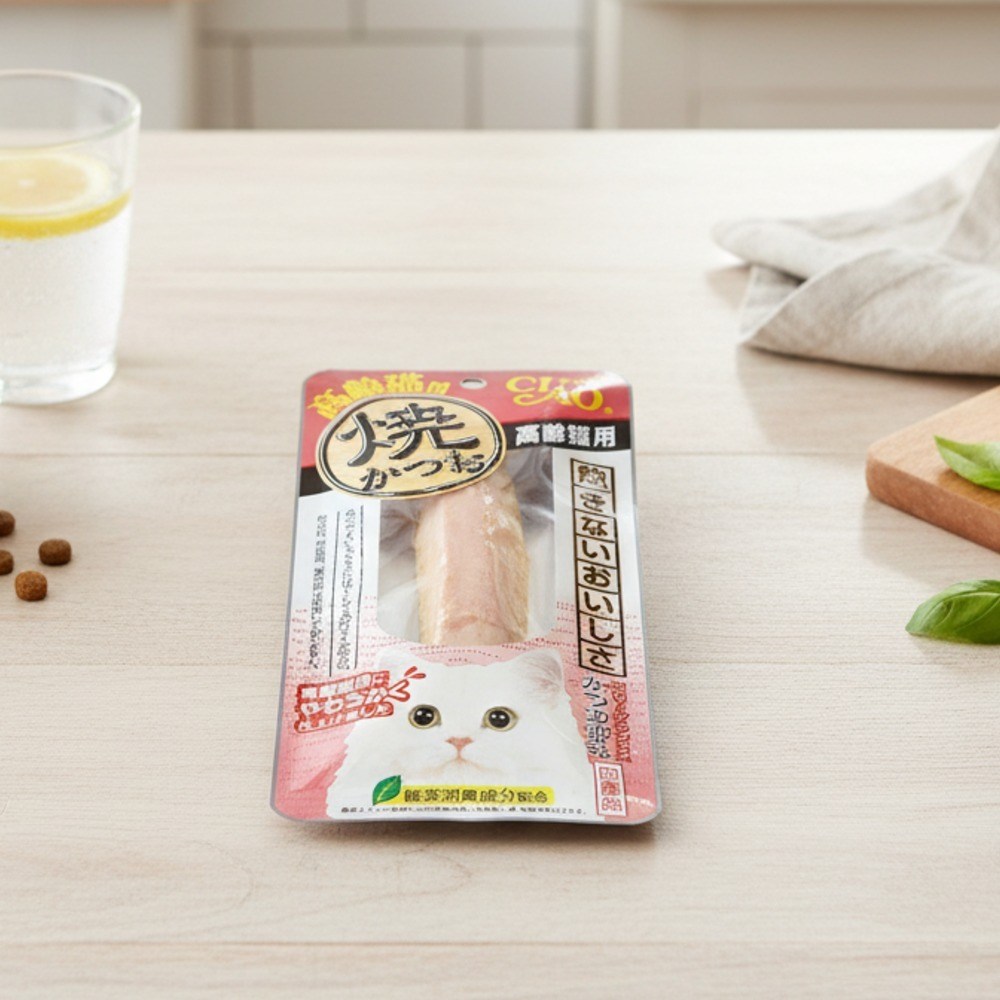 - 柔軟燒魚柳條,高齡貓咪輕鬆咀嚼,享受美味,補充活力。