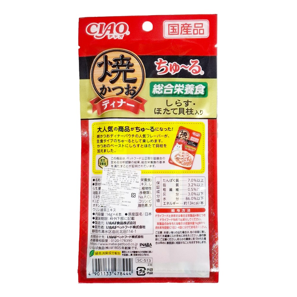 CIAO 啾嚕肉泥燒鰹晚餐,為您的愛貓帶來美味又營養的享受。這款肉泥以燒烤鰹魚為基底,搭配吻仔魚和干貝,口感豐富,香氣濃郁,讓貓咪愛不釋手。每包含有四條14克的肉泥,方便餵食,是成貓的理想零食選擇。產品採用高品質的原料,確保貓咪的健康和活力。啾嚕肉泥不僅美味,還能補充貓咪所需的營養,讓牠們保持最佳狀態。給您的愛貓一個特別的晚餐,讓牠們感受到您的關愛。