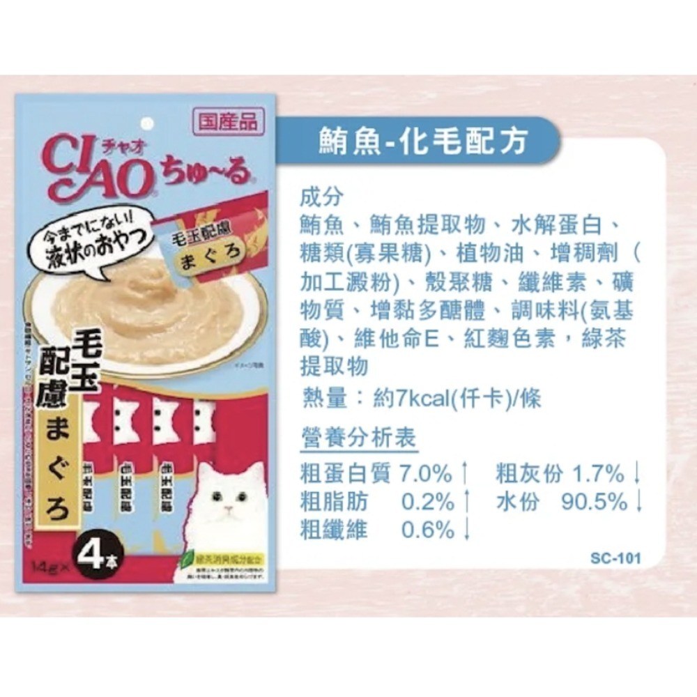 INABA CIAO 啾嚕化毛配方肉泥,是專為呵護貓咪腸胃健康設計的美味零食。這款肉泥以新鮮鮪魚為主要原料,不僅口感鮮美,還富含膳食纖維,有助於貓咪輕鬆排出毛球,減少毛球症的困擾。此外,更添加綠茶消臭成分,能有效降低貓咪便便的異味,讓居家環境更加清新。每包含有四條獨立包裝的肉泥,方便餵食,讓您的愛貓隨時享受美味又健康的零食。